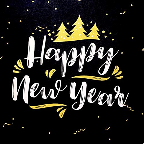 Set of 4 Round Placemats Covers Christmas Happy New Year Cloth 14" Dia | Black