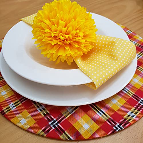 Charlo's Set of 4 Round Placemats Covers 14 Dia inch Xadrez Plaid Sun of Morning