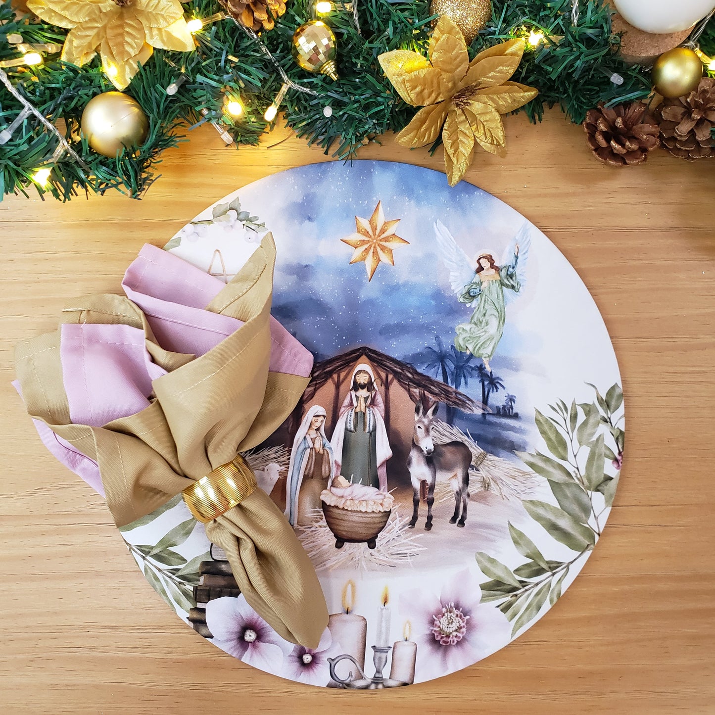 Versatile and Sustainable: Our set of 4 round placemat covers with a Christmas theme offers versatility and practicality. Made from durable polyester fabric with an elastic finish, they fit snugly over wooden circles, taking up minimal storage space in your kitchen.
