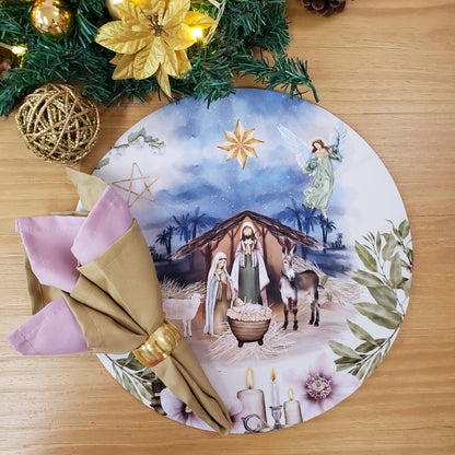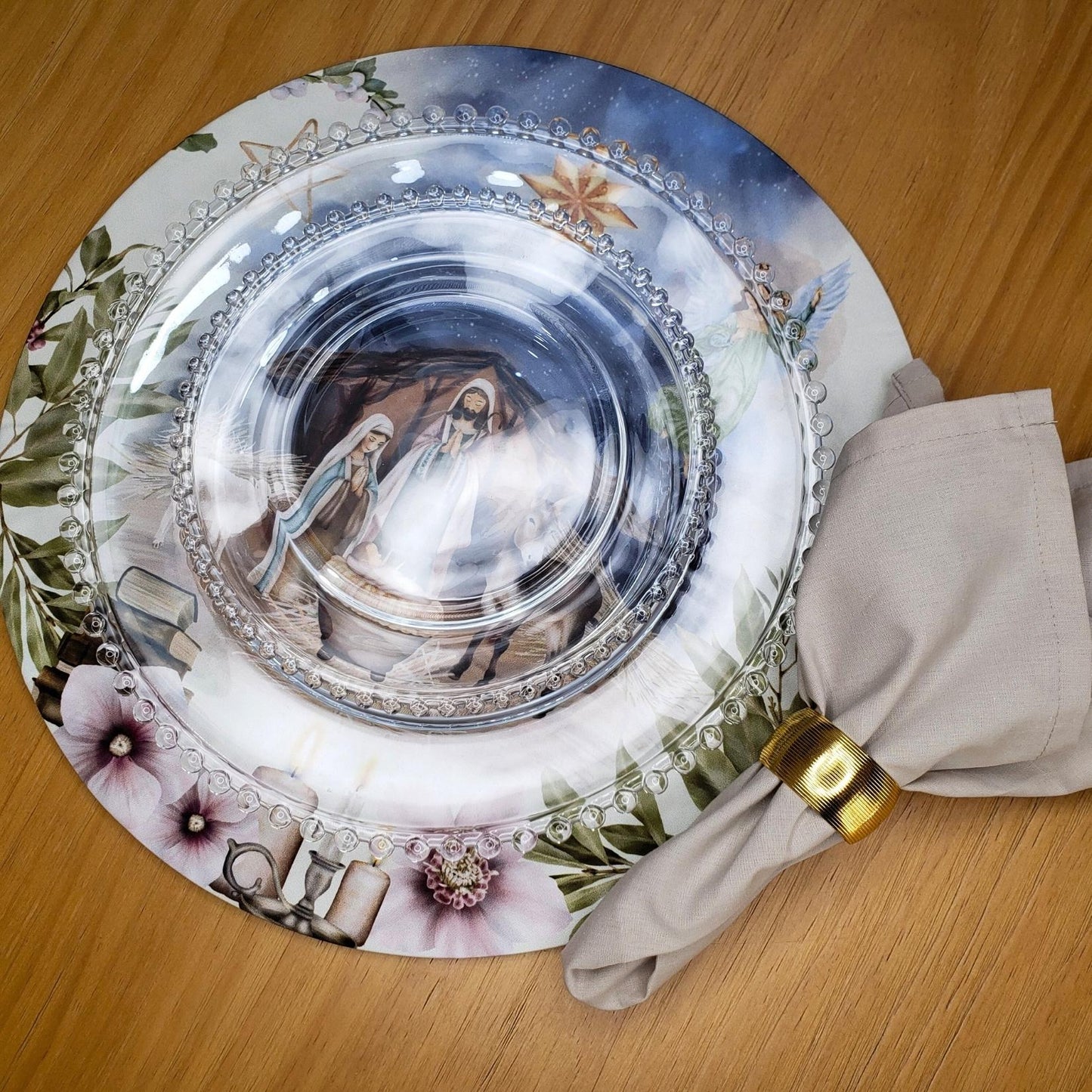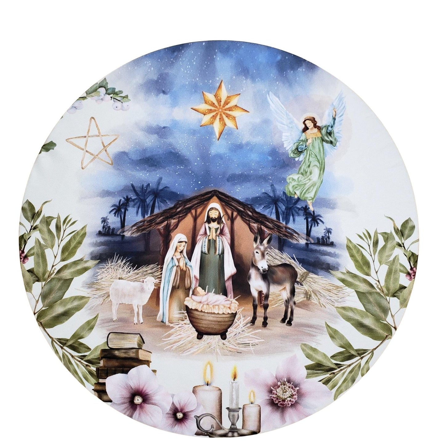 Set of 4 Round Placemats Covers Christmas Night Cloth 14" - White