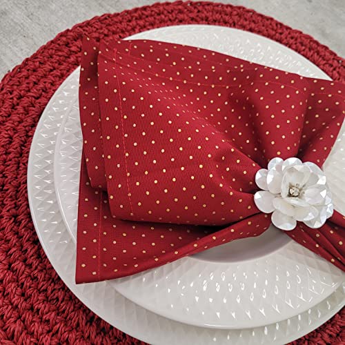 Charlo's Set of 4 Red Gold Polka Dot 100% Cotton Cloth Napkins 15" by 15" Washable Reusable