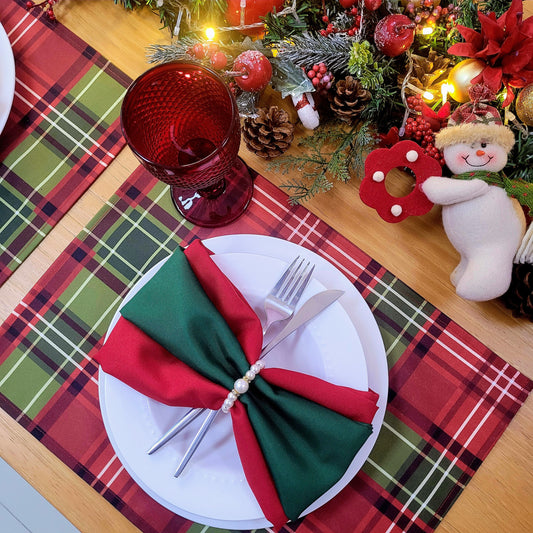 Set of 4 Placemats Christmas Plaid Cloth Waterproof 17" by 13" - Green
