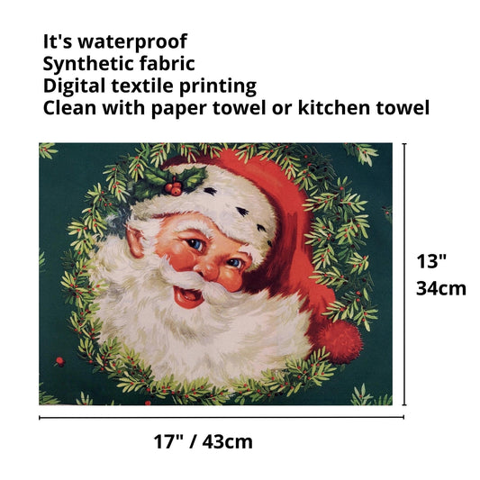 Set of 4 Placemats Christmas Santa Claus Cloth Waterproof 17" by 13" - Green