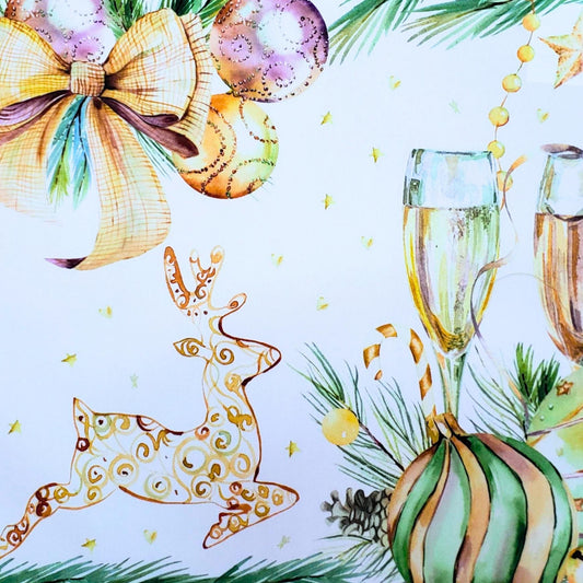 Set of 4 Placemats Christmas Toast Cup Cloth Waterproof 17" by 13" - Gold