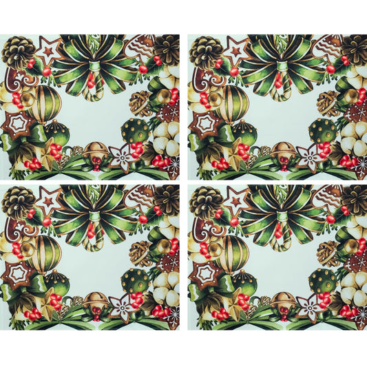 Set of 4 Placemats Christmas Party Wreath Cloth Waterproof 17" by 13" - Grey