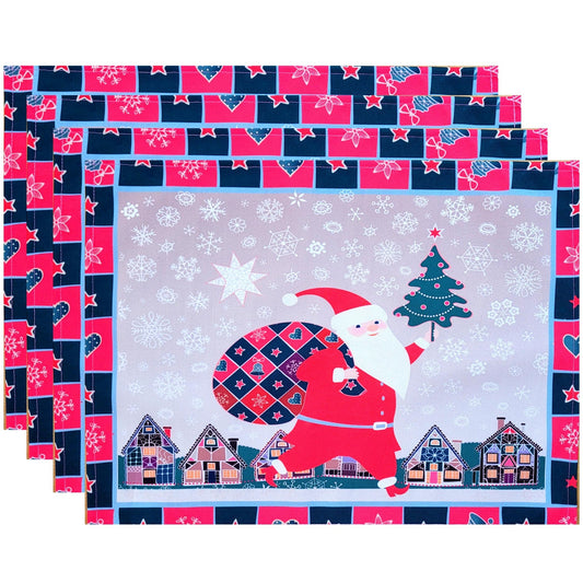 Set of 4 Placemats Christmas Santa Claus stocking Cloth Waterproof 17" by 13" - Red
