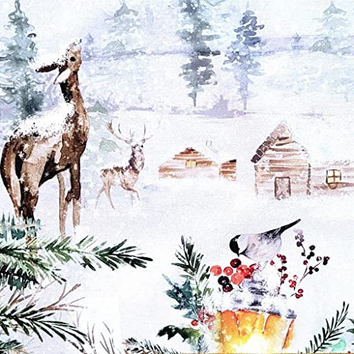 Set of 4 Placemats Christmas Happy Night Cloth Waterproof 17" by 13" - White