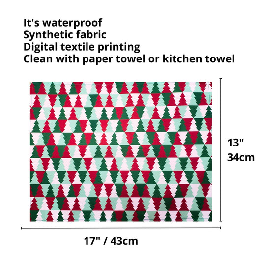 Set of 4 Placemats Christmas Tree Cloth Waterproof 17" by 13" - Green