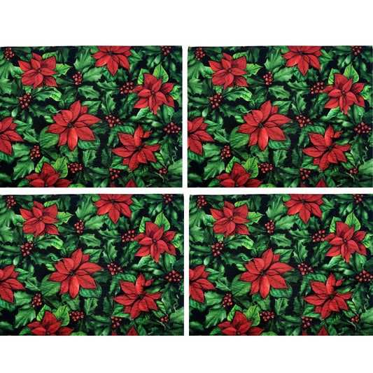 Set of 4 Placemats Christmas Flower Cloth Waterproof 17" by 13" - Red
