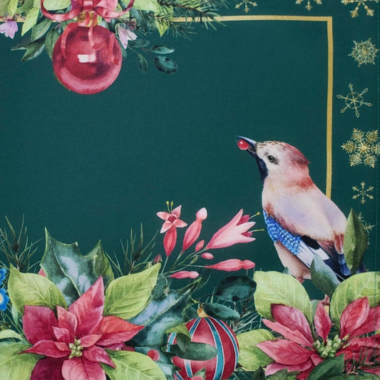 Set of 4 Placemats Christmas Bird Cloth Waterproof 17" by 13" - Green