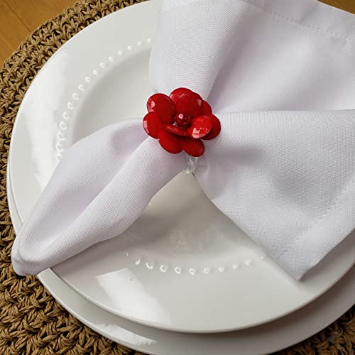 Charlo's Set of 4 Red Delicate Flower Napkin Rings for Wedding, Thanksgiving, Christmas, Wedding, Banquet, Birthday