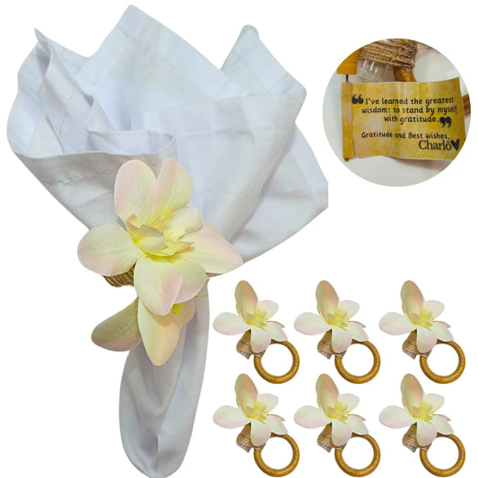 Charlo's White Magnolia Flower Message Napkin Rings Good Vibes Funny for Party Wedding Dinner Table Decor