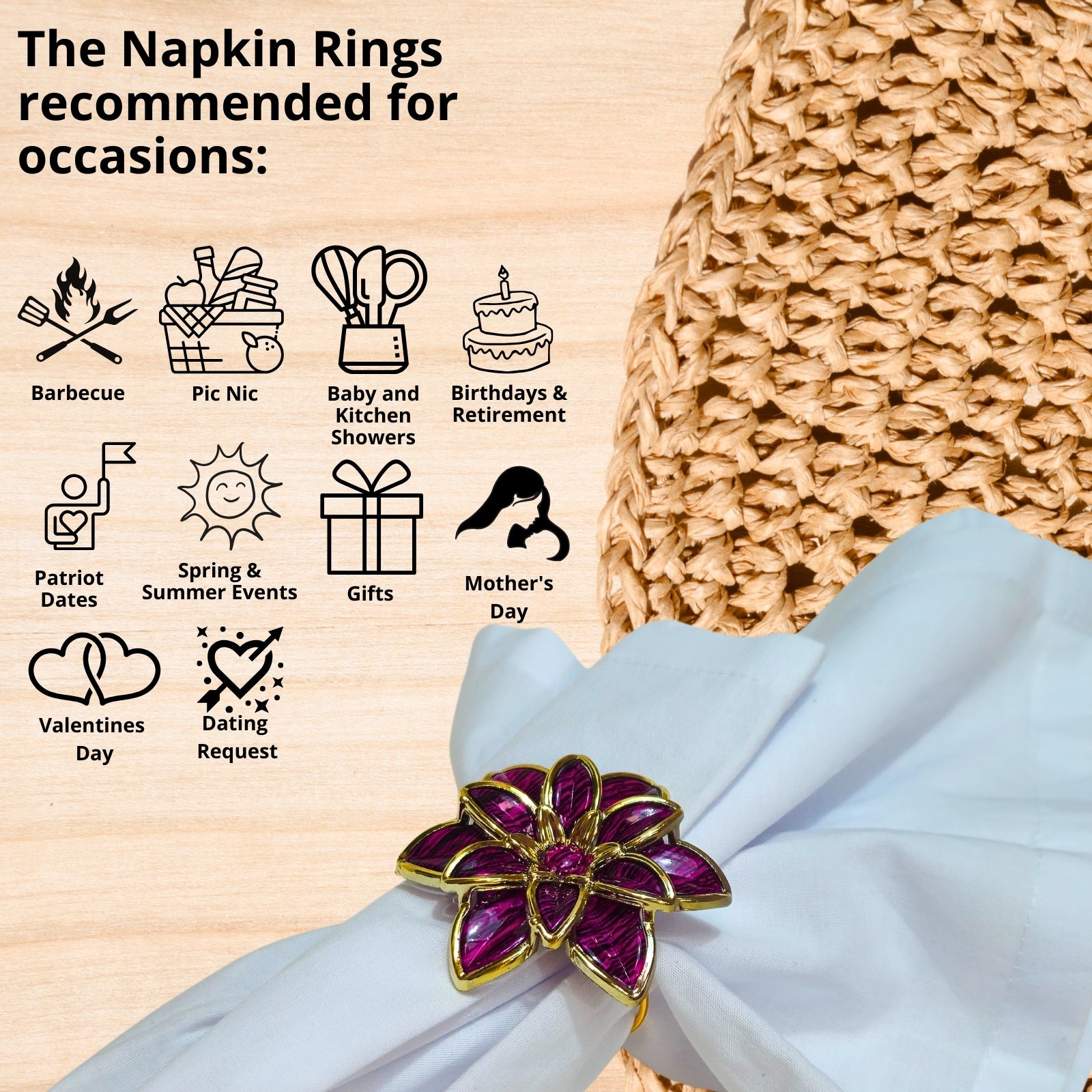 Charlo's Set of 4 Pink Party Delicate Flower Napkin Rings for Wedding, Thanksgiving, Christmas, Wedding, Banquet, Birthday