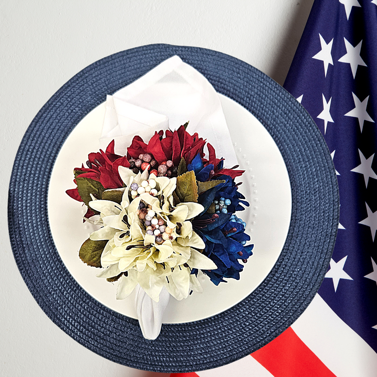 Charlo's Patriot 4th July Pom Pom Napkin Rings for Patriotic Holidays, Dinner Table Decor