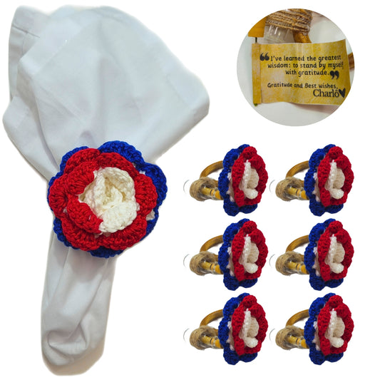 Charlo's Tricolor Patriot Crochet Message Napkin Rings Good Vibes Funny for 4th July Dinner Table Decor