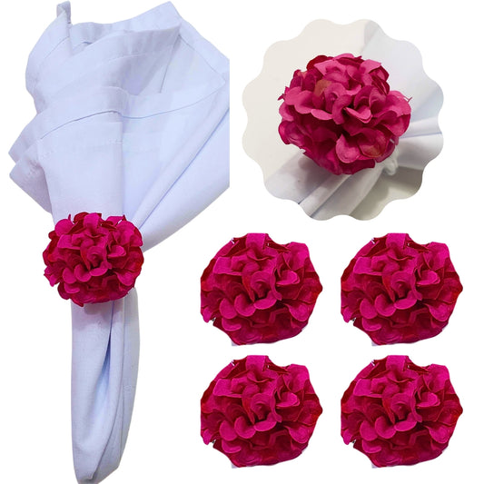Charlo's Set of 4 Pink Party Delicate Flower Napkin Rings for Wedding, Thanksgiving, Christmas, Wedding, Banquet, Birthday