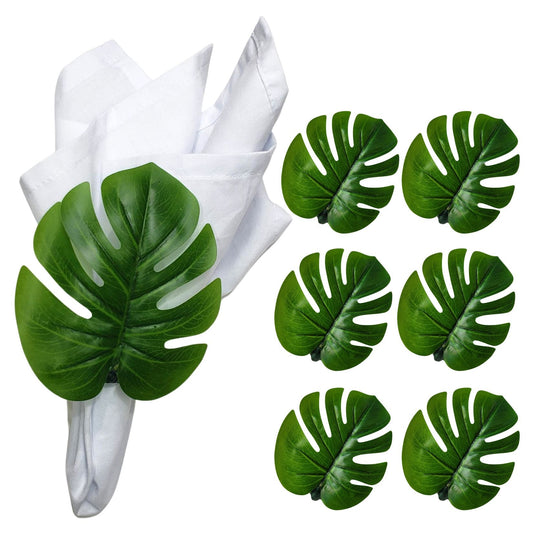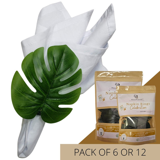 Charlo's Set 6 Green Monstera Leaf Tropical Napkin Rings Ecofriendly Pack for dining table decor