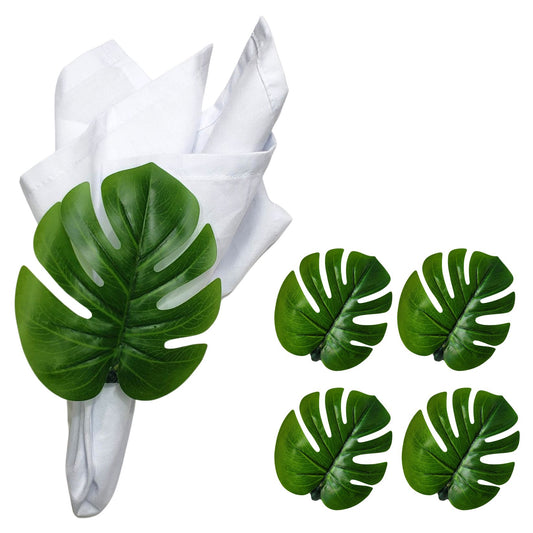 Charlo's Set 4 Green Monstera Leaf Tropical Napkin Rings Ecofriendly Pack for dining table decor