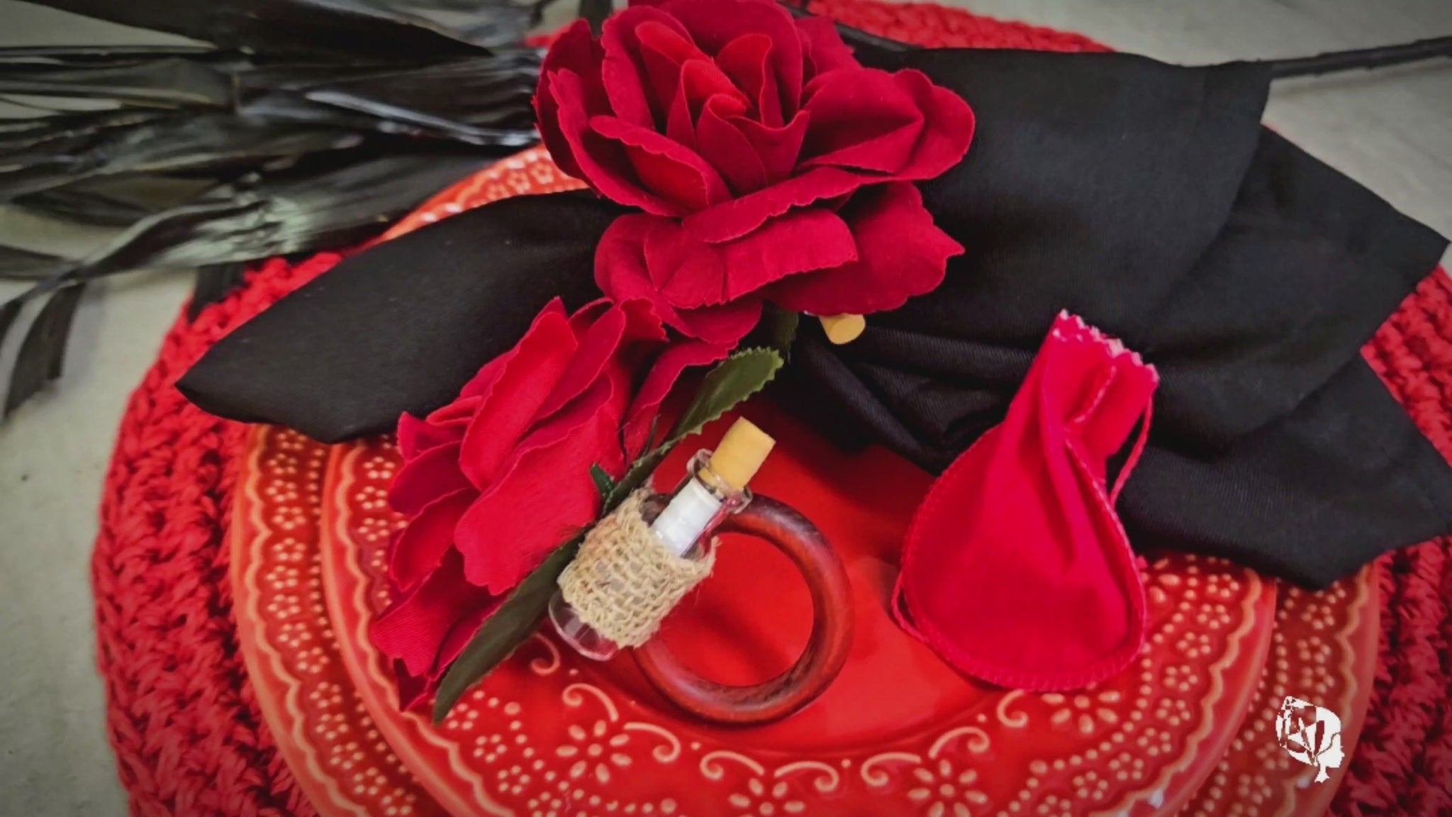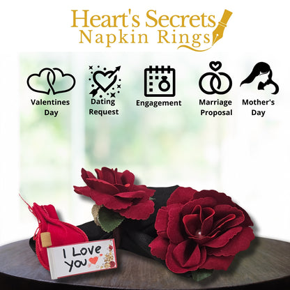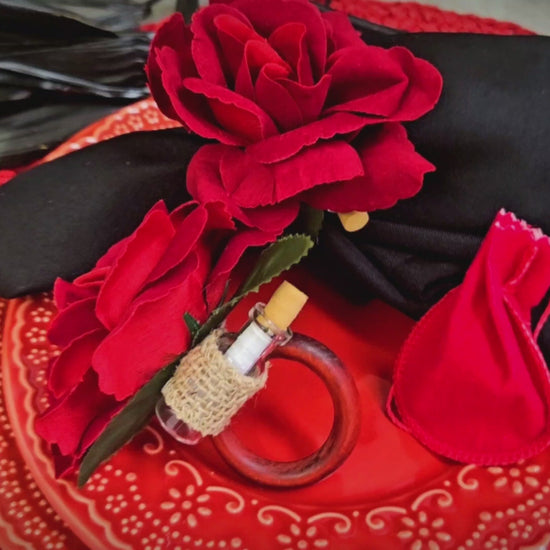 Charlo's Heart's Secrets Napkin Rings Red Colombiana Romantic Flower Rosebud