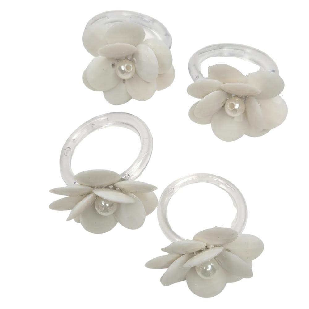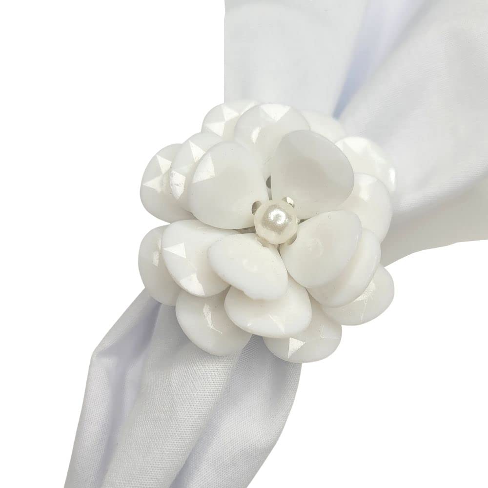 Charlo's Set of 4 White Delicate Flower Napkin Rings for Wedding, Thanksgiving, Christmas, Wedding, Banquet, Birthday