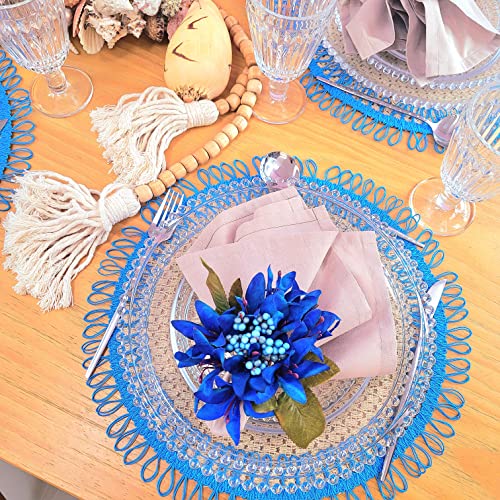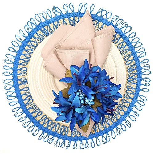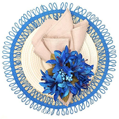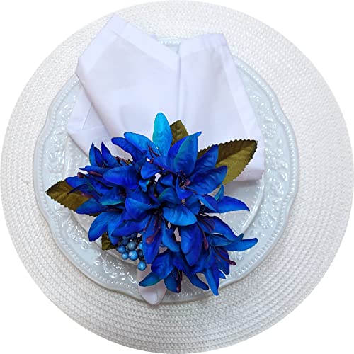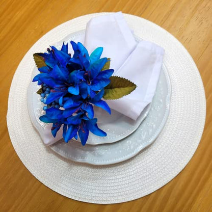 Maison Charlo Set of 4 Royal Blue Lilies Flower Celebration Napkin Rings