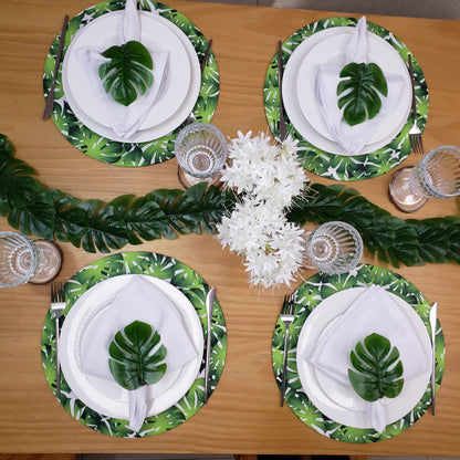 Want to be inspired by this trend? The monstera leaf has been used to decorate the most varied spaces, including the table. In places where shades of brown and wood elements predominate, the rib of adam also brings perfect harmonization, in addition to breaking the seriousness of the closed tones.
