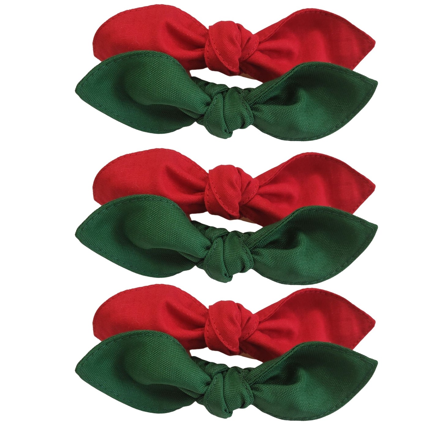 Maison Charlo | Set of 6 Ecofriendly Duo Green Red Cloth Ties Napkin Rings, Christmas, Valentine's, Mother's Day, tabledecor, gift