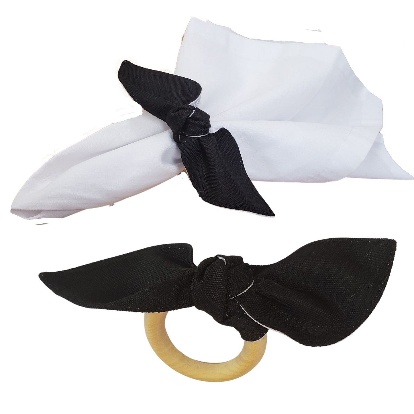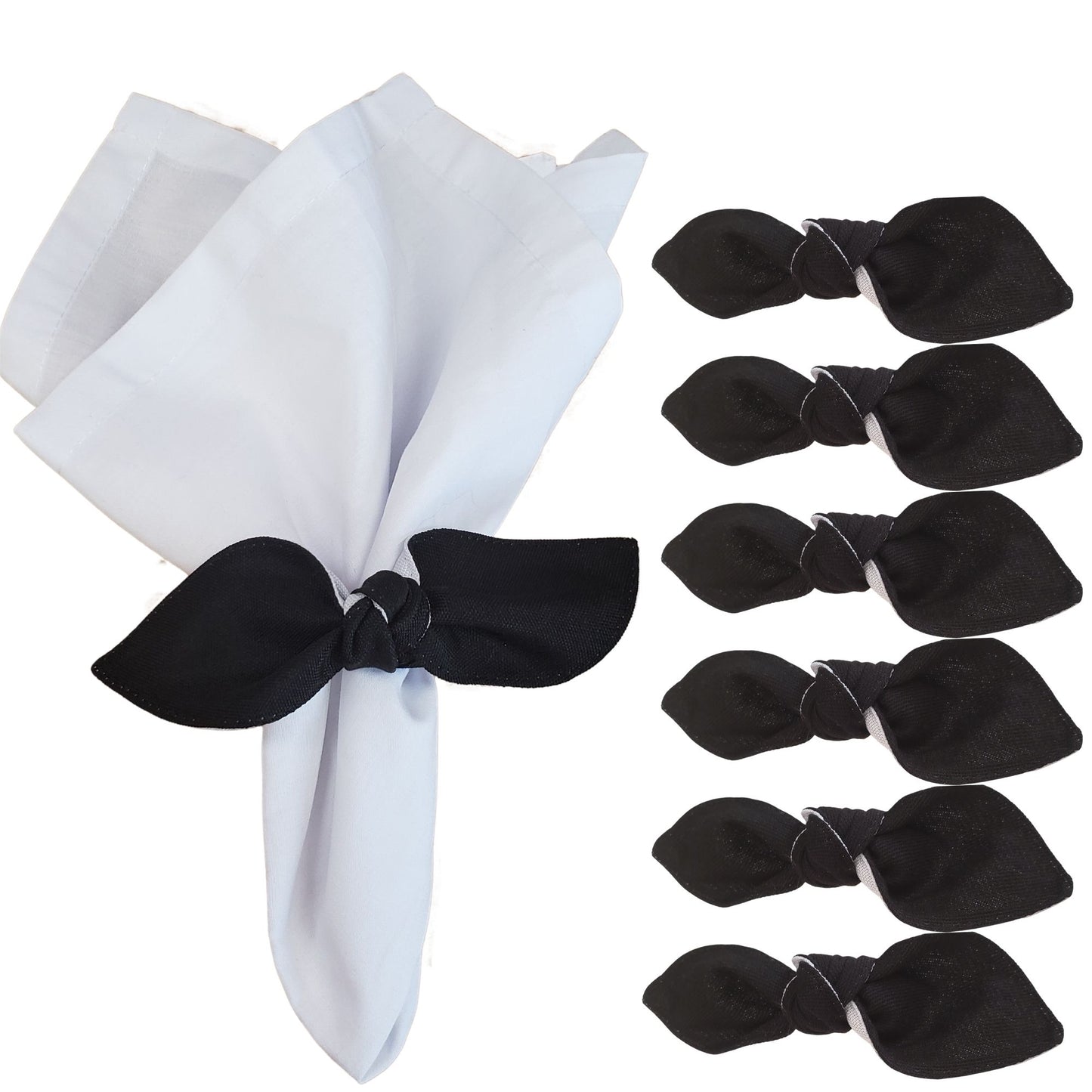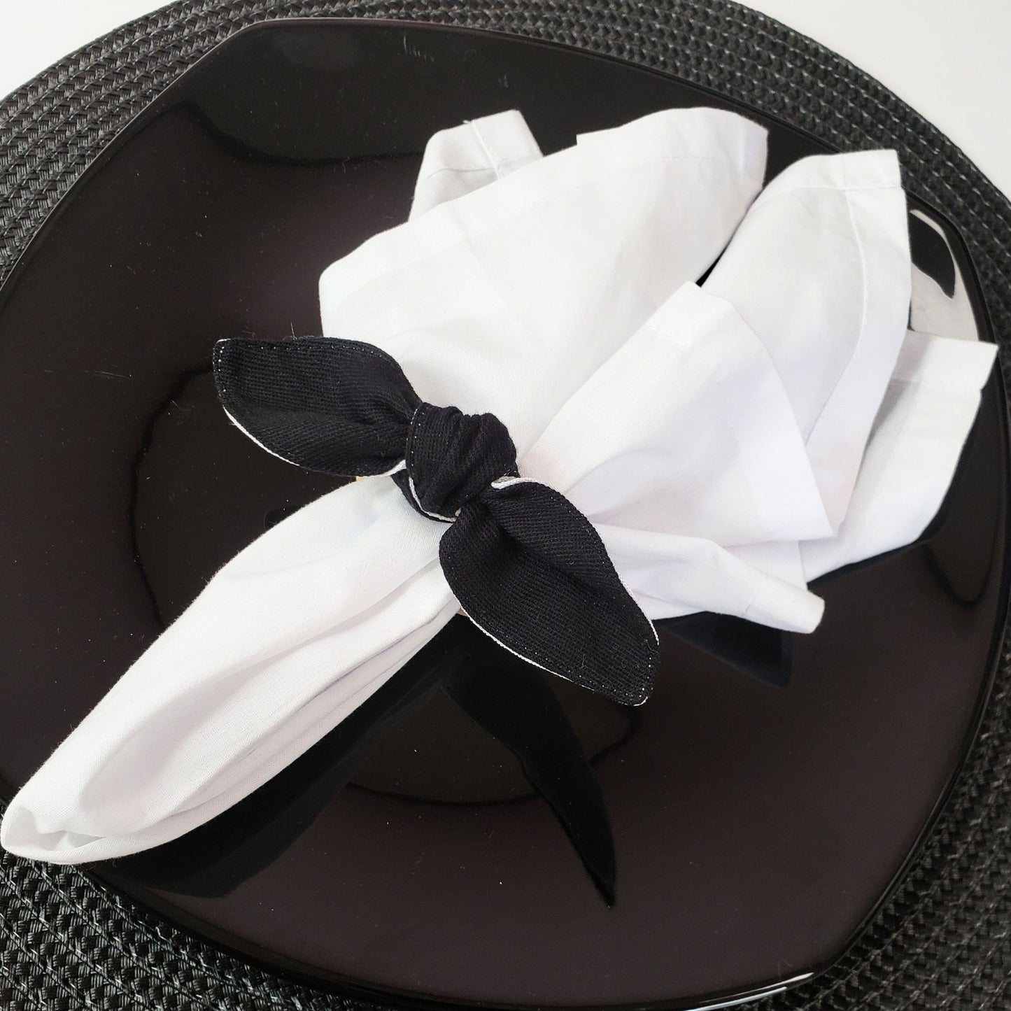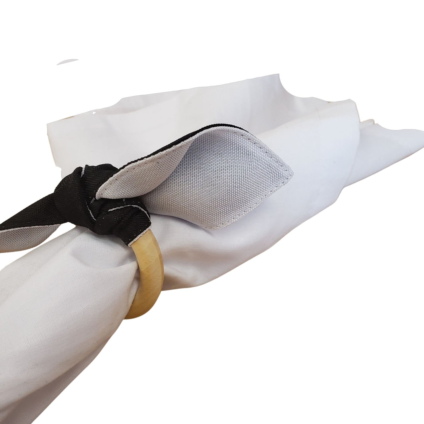 Maison Charlo | Set of 6 Ecofriendly Duo Black White Cloth Ties Napkin Rings, Christmas, Easter, Valentine's, Mother's Day