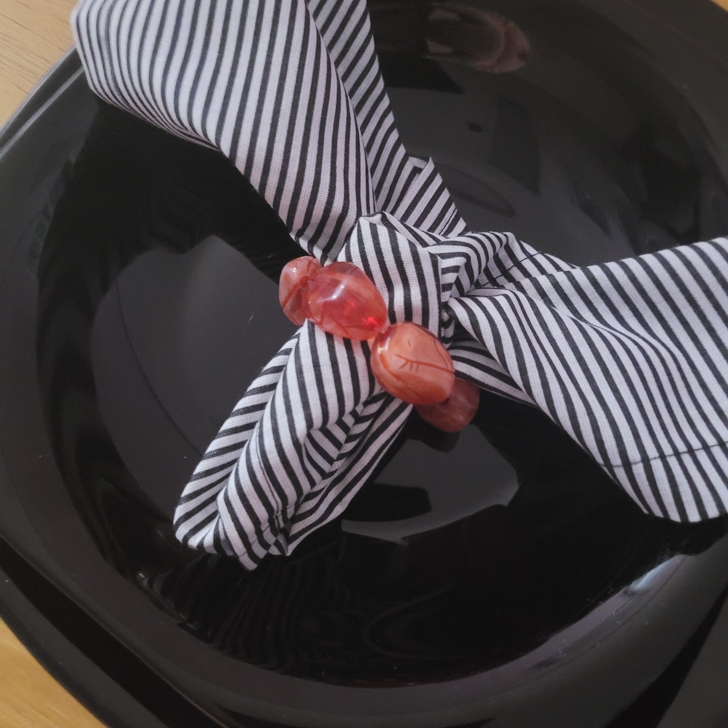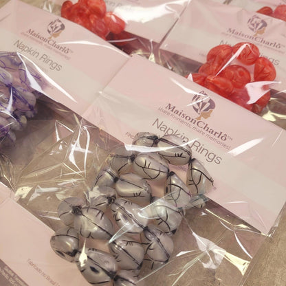 These napkin rings are carefully handmade, showing a love and attention to detail that can only enhance the Halloween experience. Featuring a design with dark stones, they are perfect for adding a thematic and sophisticated touch to your dinner table during the festivities.