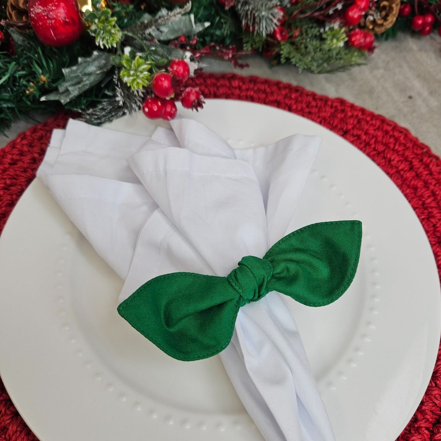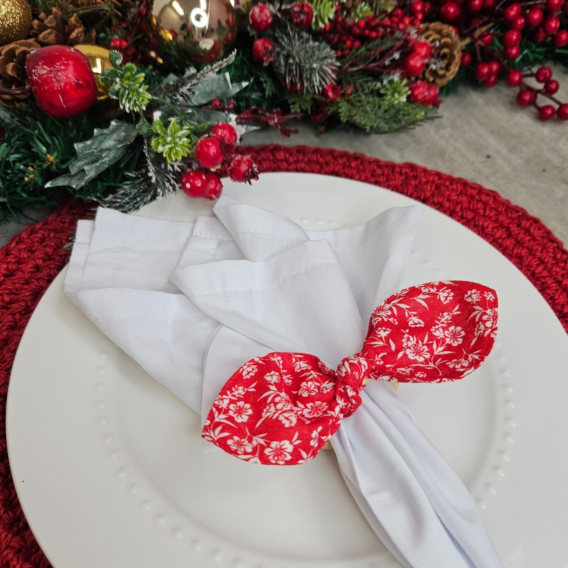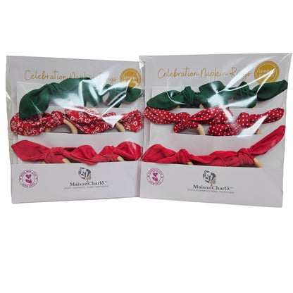 Maison Charlo | Set of 6 Ecofriendly Trio Green Red White Floral Ties Napkin Rings, Christmas, Easter, Valentine's, Mother's Day