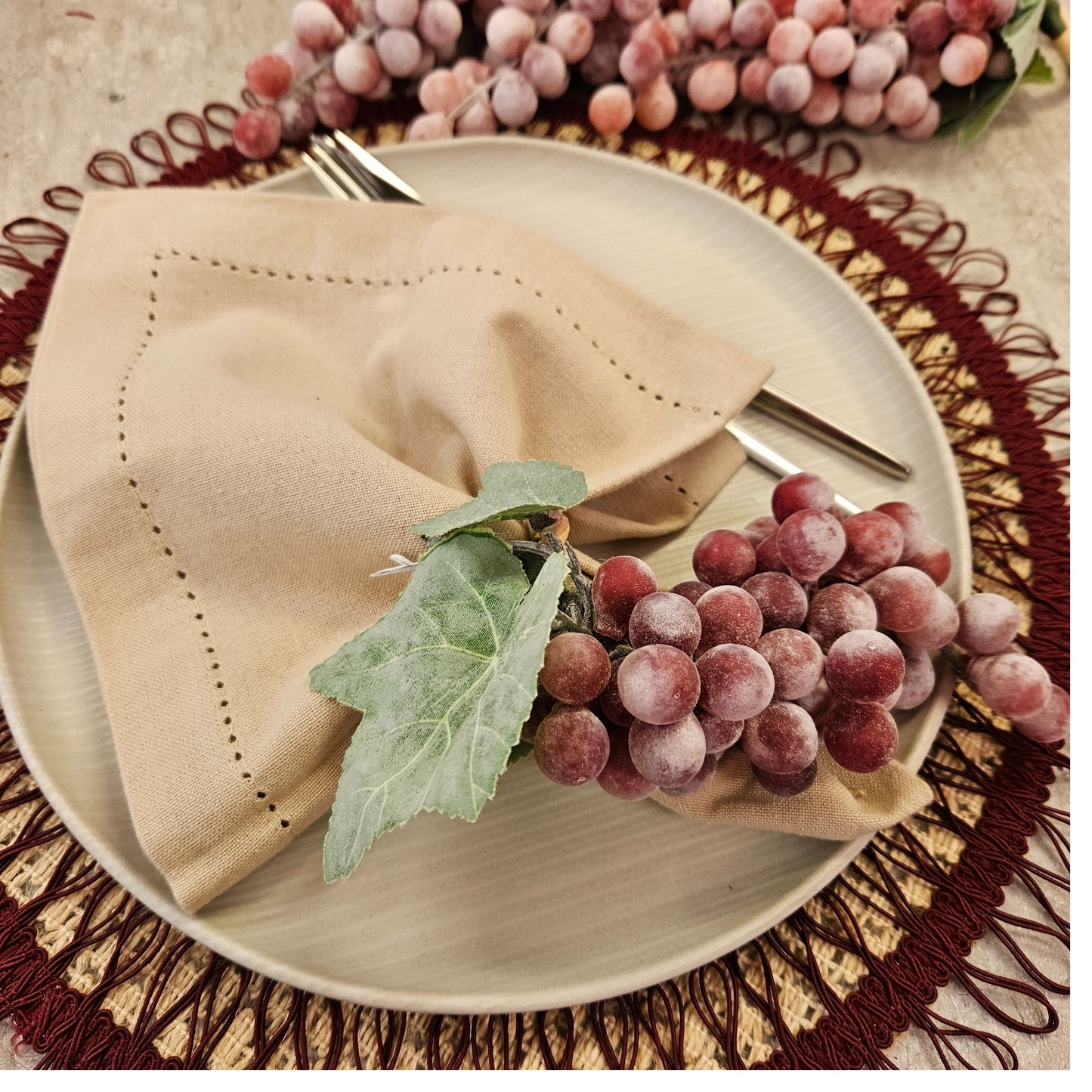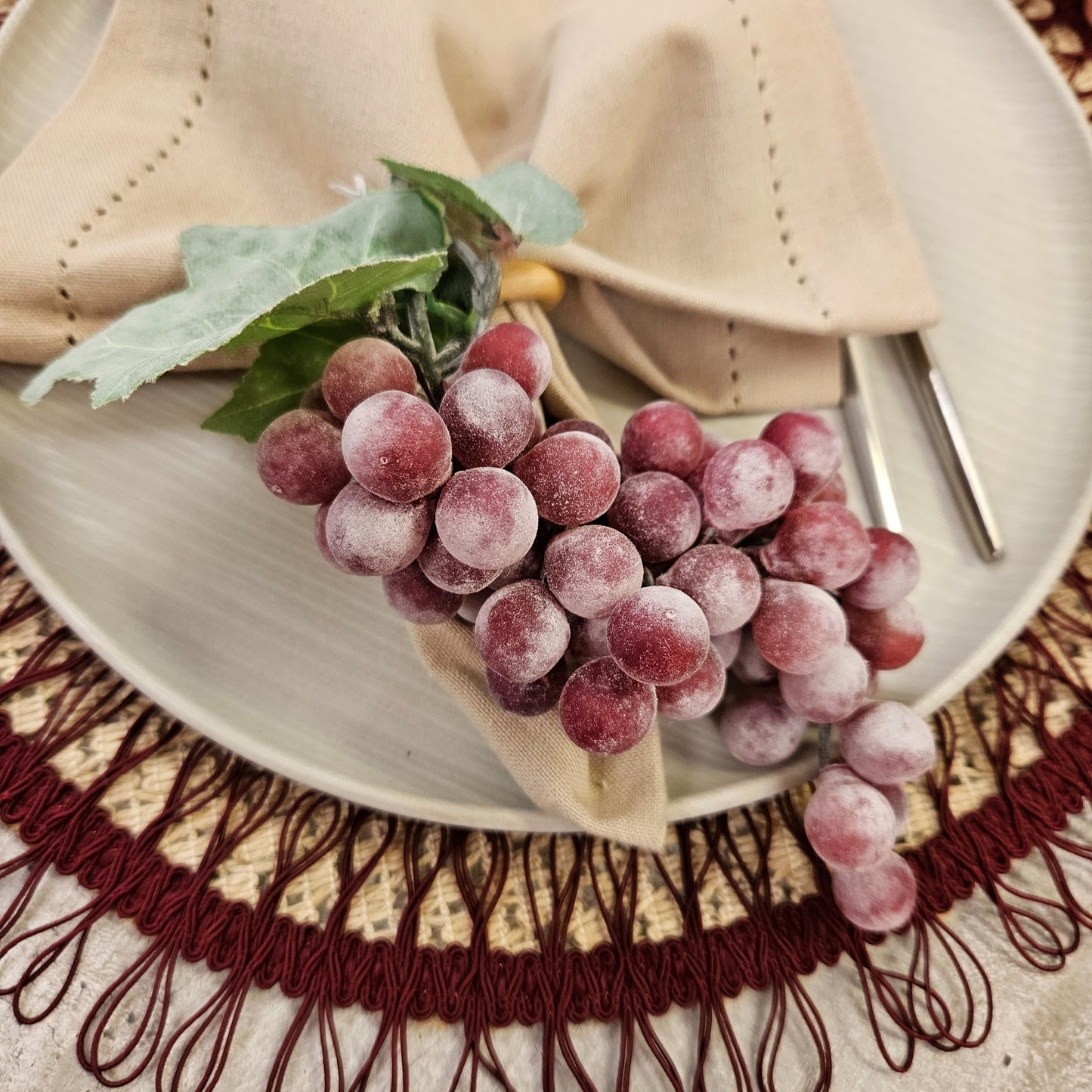 Set of 4 Purple Bunch of Grapes Prime Napkin Rings , the material is high quality plastic and ring the metal hoop coated with floral tape. With this napkin ring you can use it on several occasions. Whether you're dining al fresco or setting the dining room table for a dinner party, you'll bring the fresh feeling of the outdoors to your table with these handcrafted napkin rings.