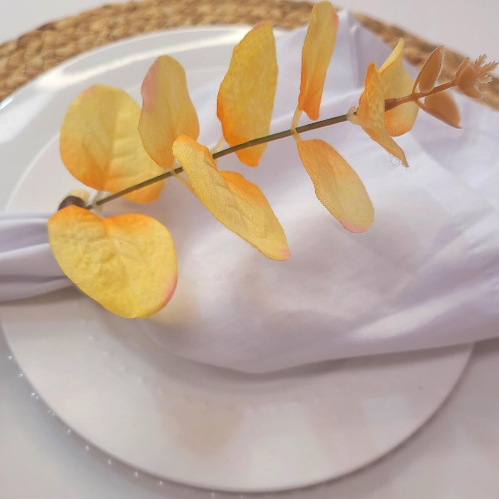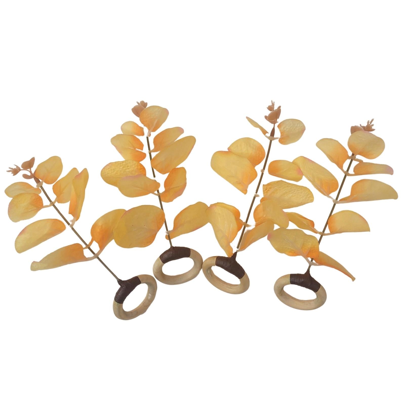 Set of 4 Yellow Leaf Eucalyptus Napkin Rings, Rustic Napkin Ring, Minimalist Tabledecor, Oriental Tabledeco