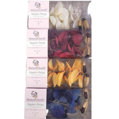 - ABOUT THE PRODUCT - Set of 4 Eucalyptus Leaf Napkin Rings, the material is Fabric (Flower) and wood ring. If you want to surprise your guests, here's a tip that will brighten up your table and is a real charm at your table is this Eucalyptus Leaf Napkin Rings. If you are going to choose eucalyptus to decorate your wedding, your home, know that it will bring freshness and naturalness to the environment