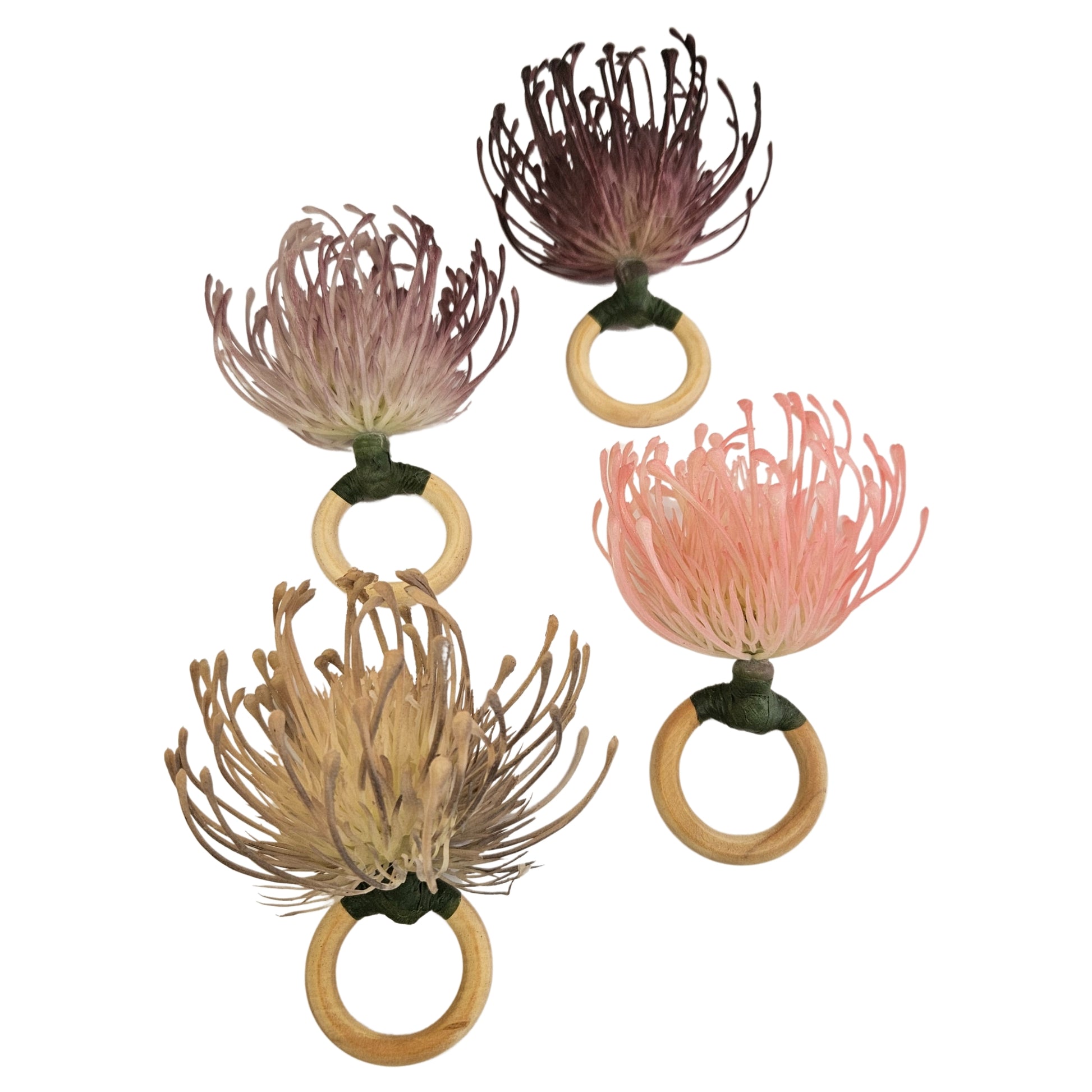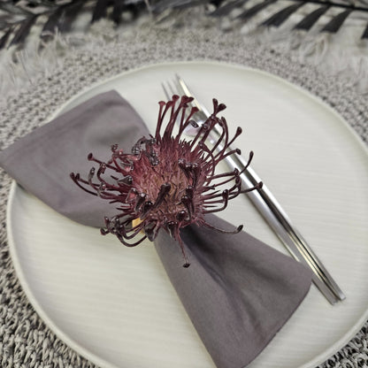 Set of 4 Purple Rustic Savanna Flower Napkin Rings, the material is high plastic and wood ring. With this napkin rings you can use it on several occasions. Whether you're dining al fresco or setting the dining room table for a dinner party, you'll bring the fresh feeling of the outdoors to your table with these handcrafted napkin rings.