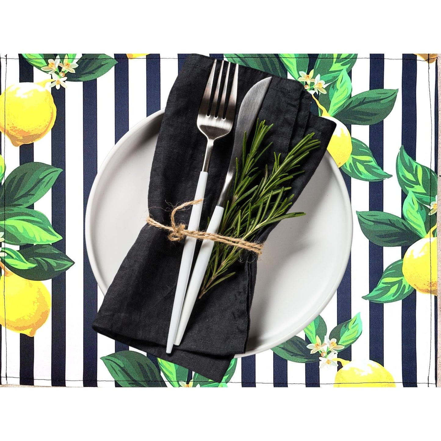 STYLISH AND SOPHISTICATED - Set of 4 Placemats Lemon Siciliano Cloth Waterproof. Whether you're dining alfresco or setting the dining room table for a dinner party, you'll bring the classy feeling to your table with these Handmade Placemats. They're great for family gatherings, special occasions, or even entertaining guests at various events or celebrations.