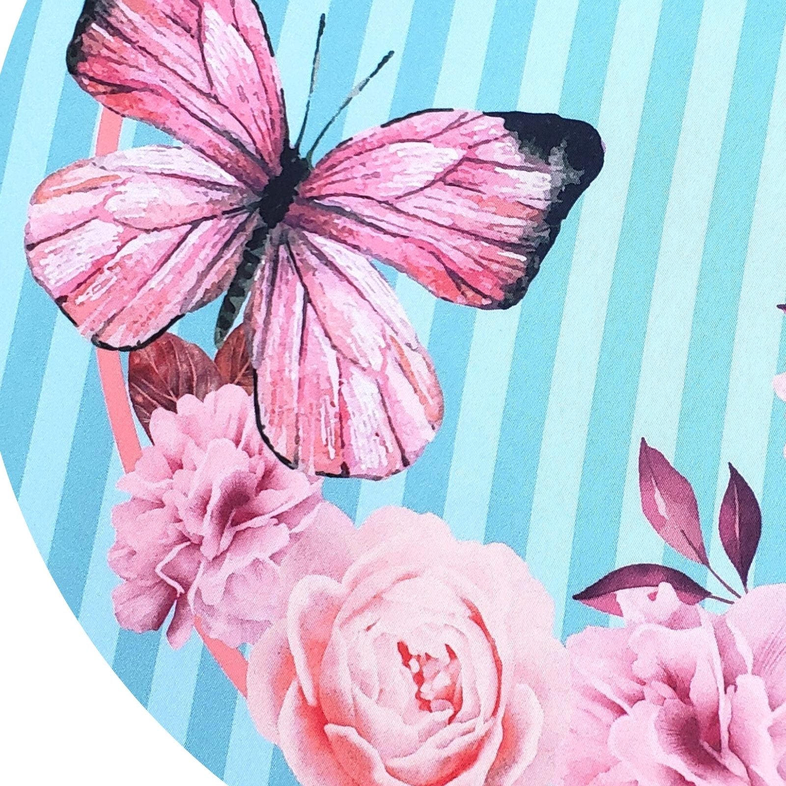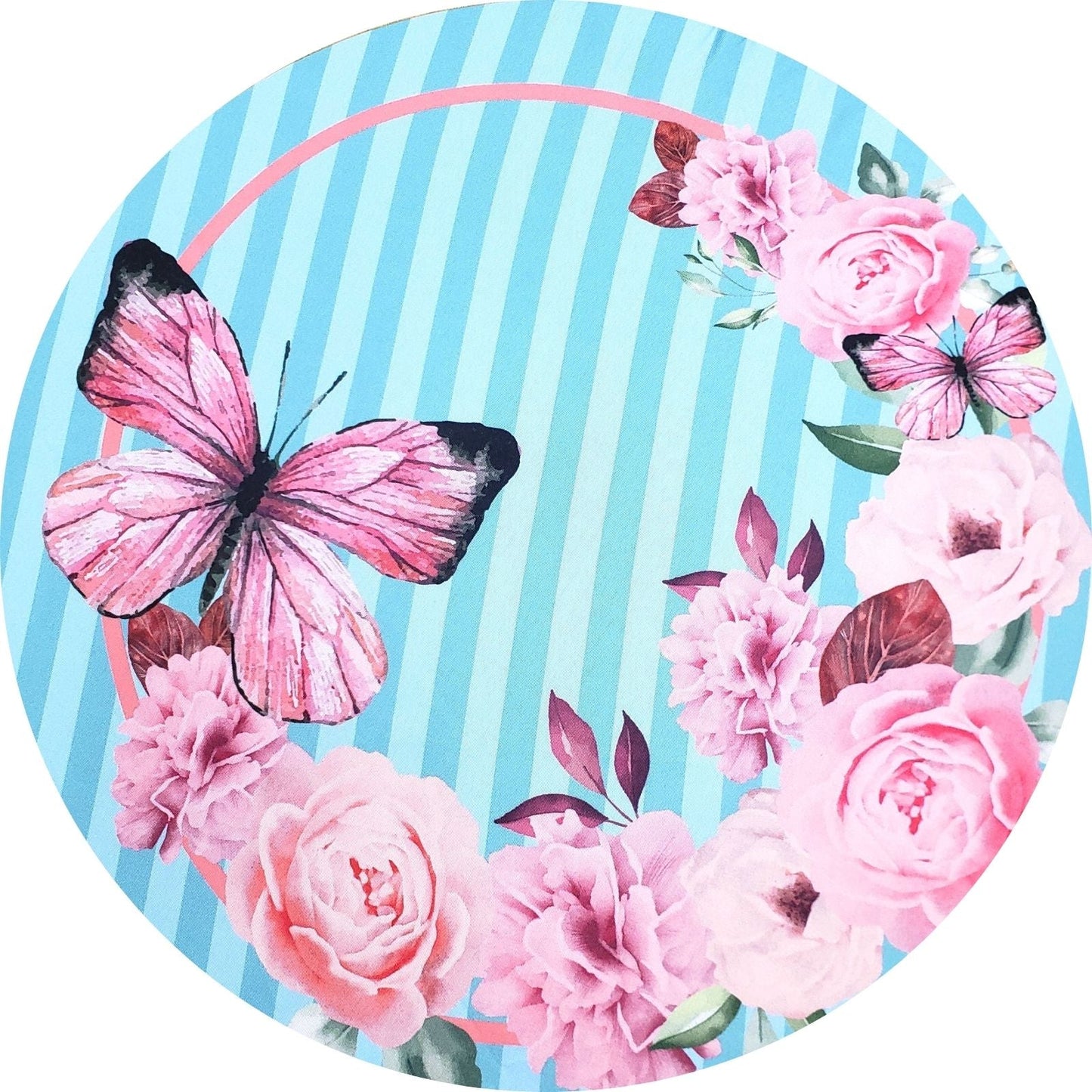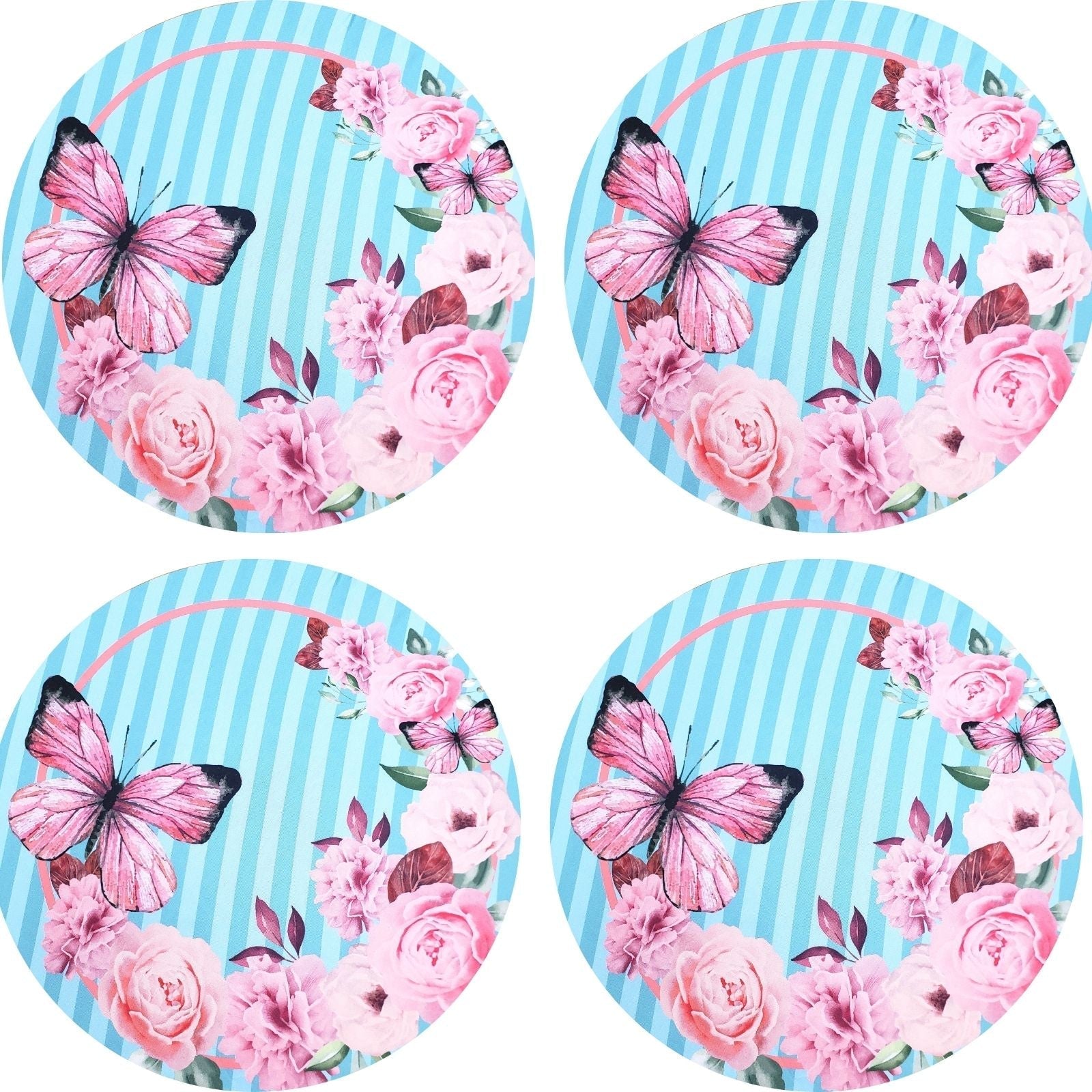Set of 4 Round Placemats Covers Pink Blue Striped Butterfly 14 Dia inch