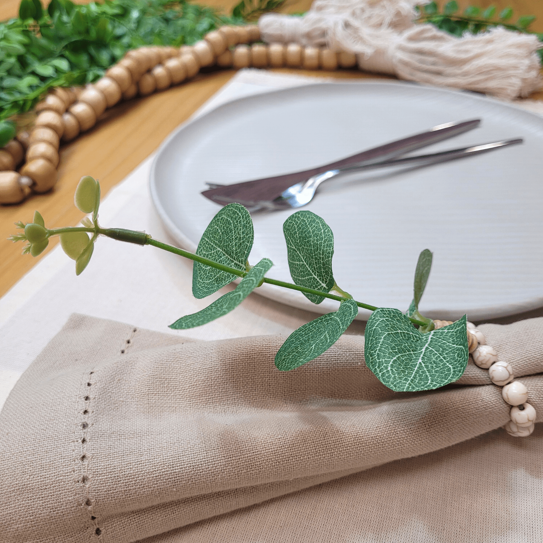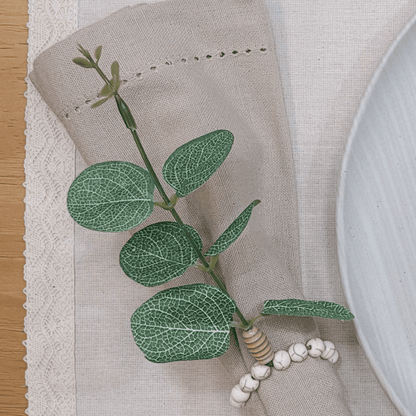 Discover the perfect blend of rustic charm and minimalist elegance with Charlo's Eucalyptus Leaf Napkin Rings. Handcrafted with attention to detail, these eco-friendly napkin rings bring a fresh and purifying touch to any table setting. Ideal for weddings, home decor, and special occasions, they're a testament to sophisticated dining with an eco-conscious heart. Learn how to enhance your dining experience with these beautifully realistic, sustainable table accessories.