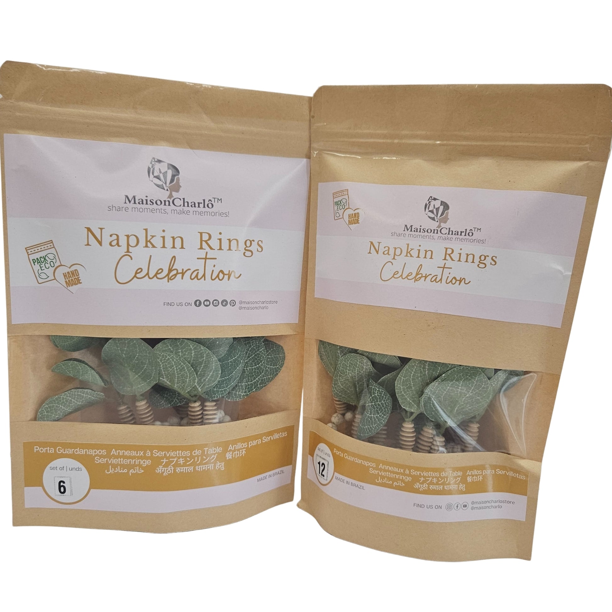 Charlo's commitment to sustainability is evident not only in the eco-friendly design of these napkin rings but also in their packaging. Each set comes in an eco-pack made from biodegradable materials and recycled PET bottles, emphasizing the brand's dedication to the environment. Choose Charlo's Eucalyptus Leaf Napkin Rings for an eco-conscious addition to your table decor that doesn't compromise on style or realism.