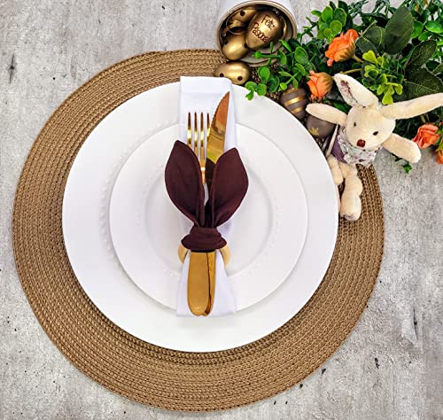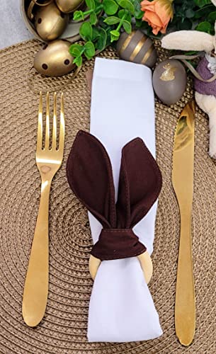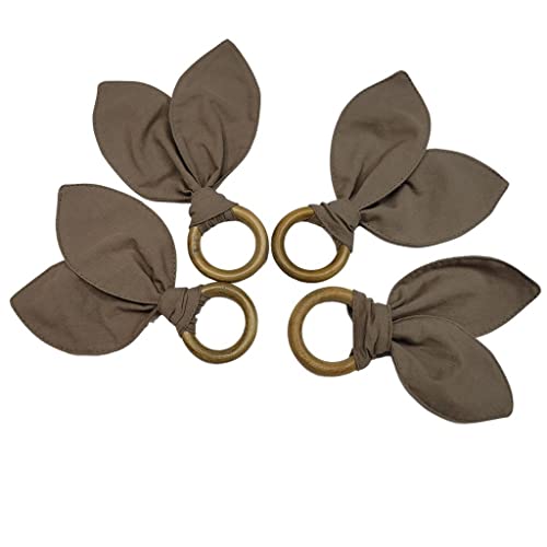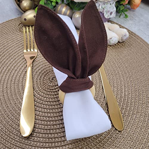 Maison Charlo | Set of 4 Brown Bunny Ears Napkin Rings | Easter Decorations for Table | Chocolate Brown