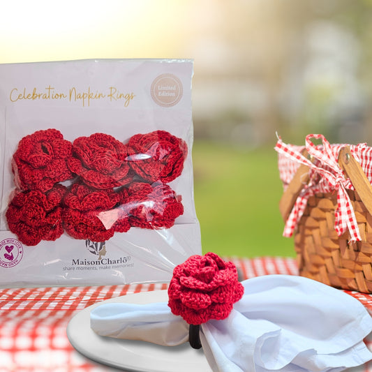Charlo's Set of 4 Red Crochet Rosebud Napkin Rings, High Quality Products, gifts,