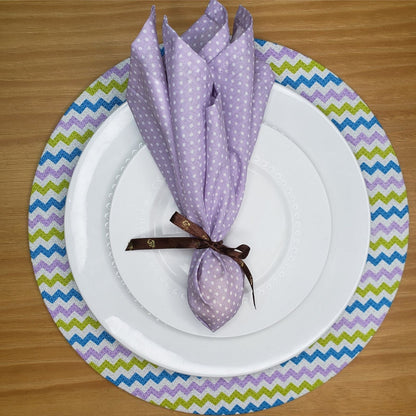 Charlo's Set of 4 Round Placemats Covers Paint ZigZag II 14 Dia inch