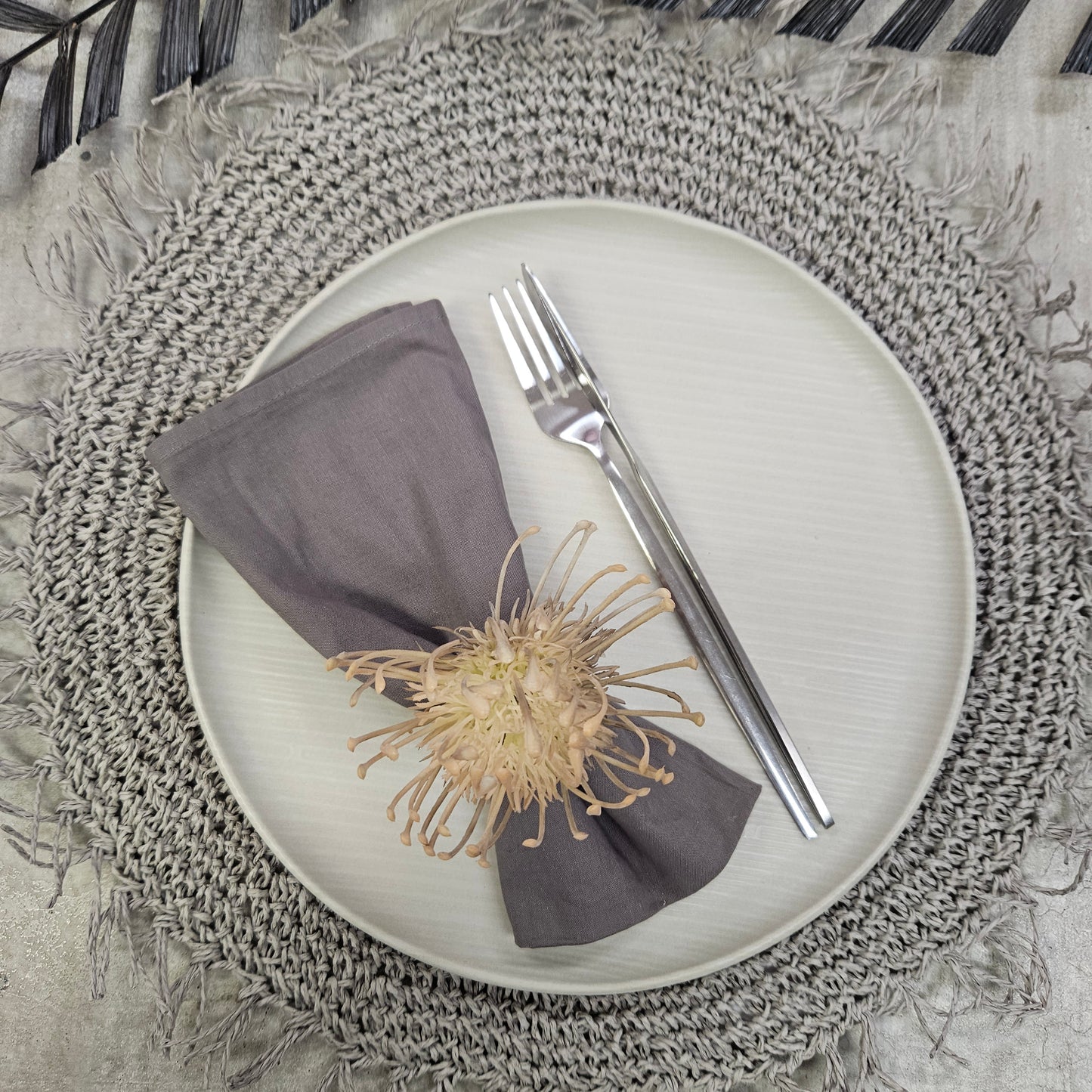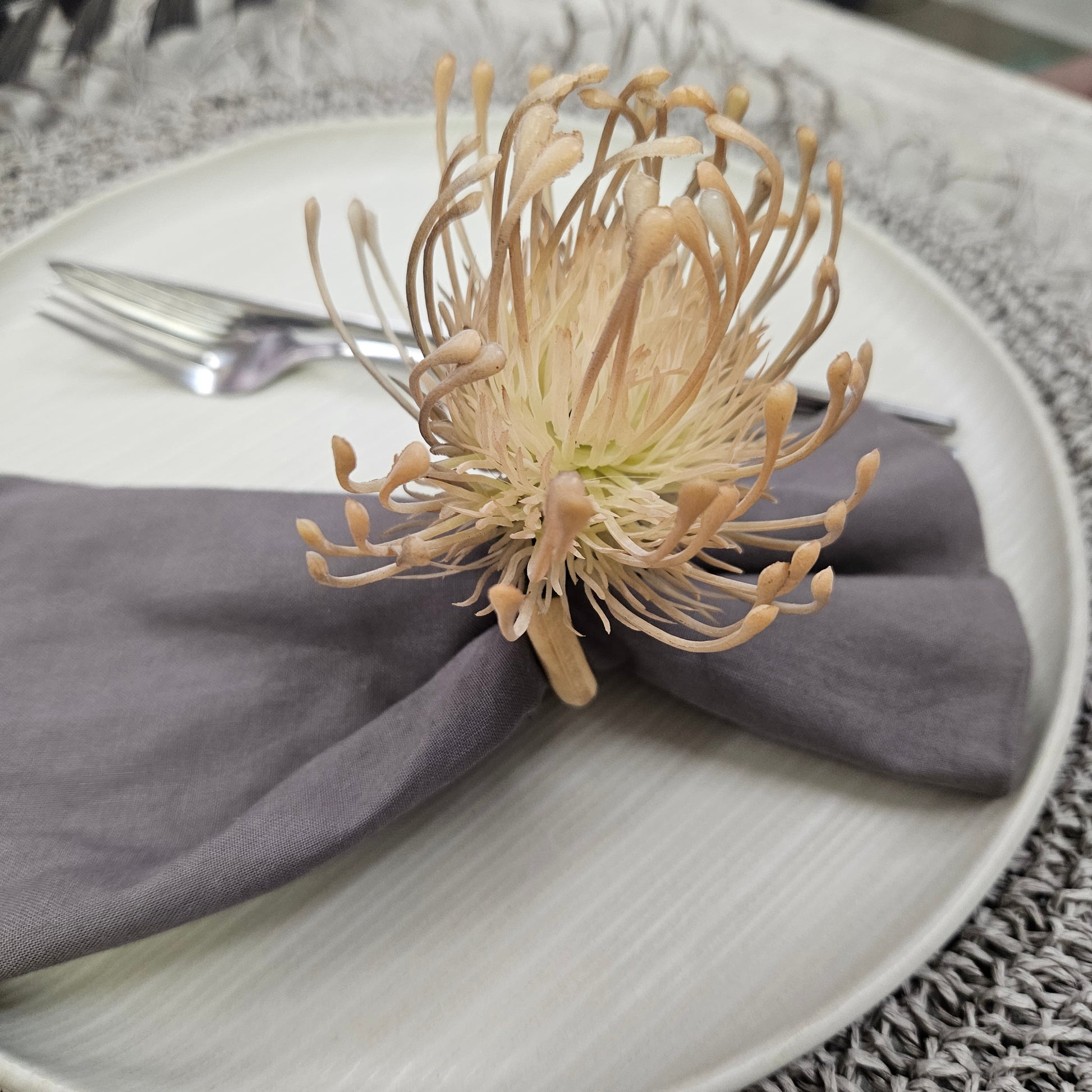 Set of 4 Beige Rustic Savanna Flower Napkin Rings, the material is high plastic and wood ring. With this napkin rings you can use it on several occasions. Whether you're dining al fresco or setting the dining room table for a dinner party, you'll bring the fresh feeling of the outdoors to your table with these handcrafted napkin rings.