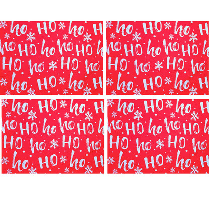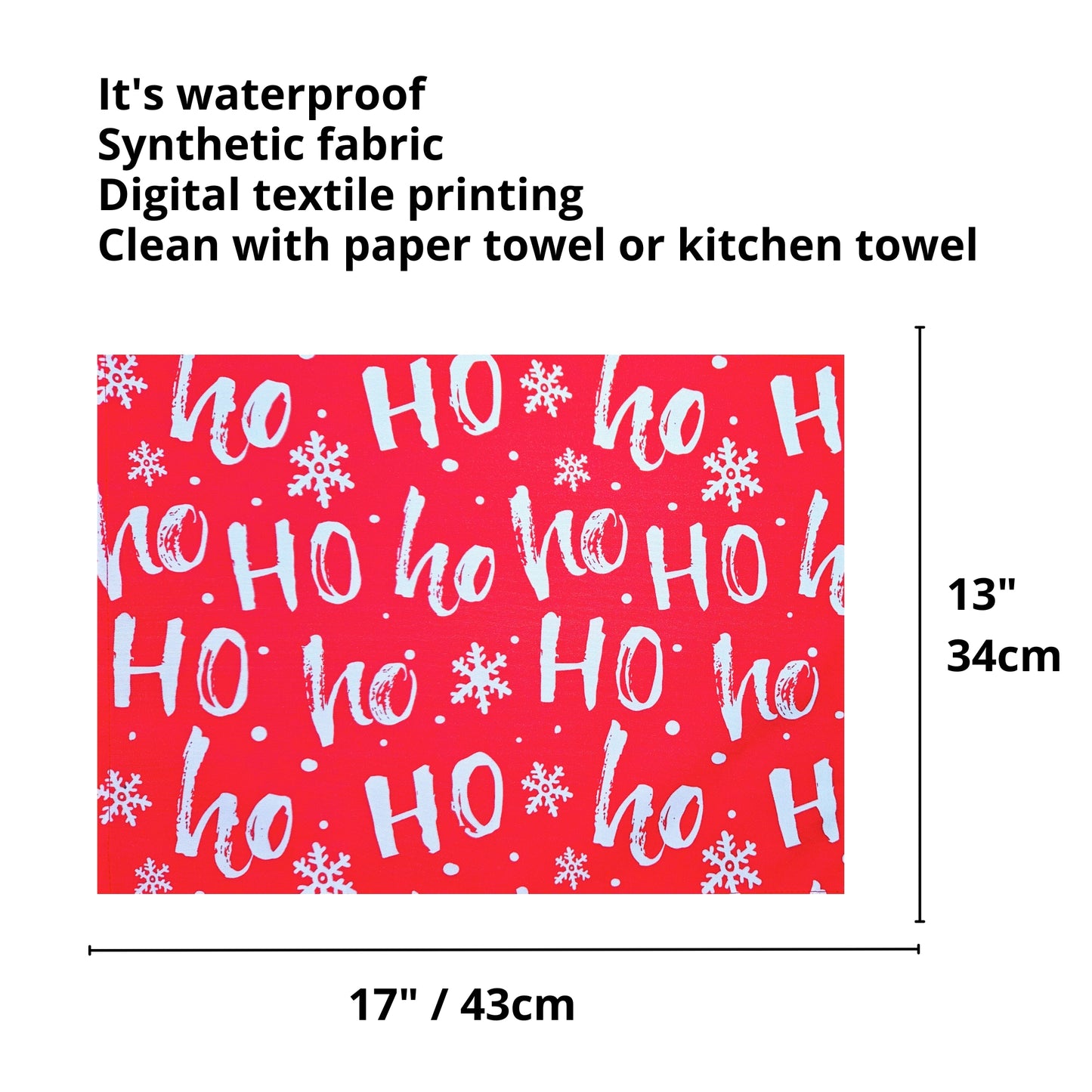 Set of 4 Placemats Ho ho ho Red Christmas Cloth Waterproof 17" by 13"