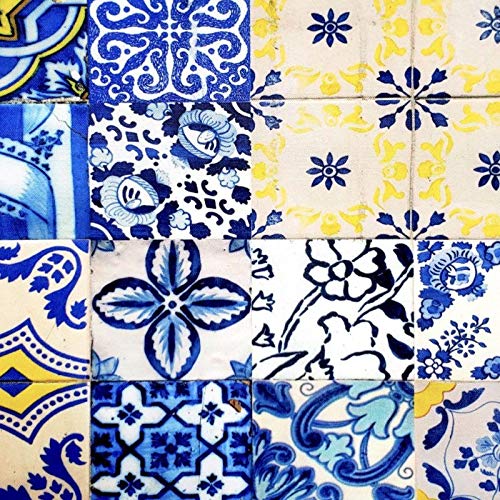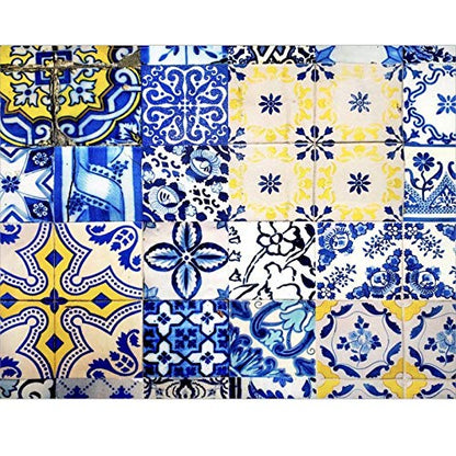 Set of 4 Waterproof Rectangular Placemats Blue Tile 17" by 13" (43cmx34cm)