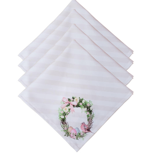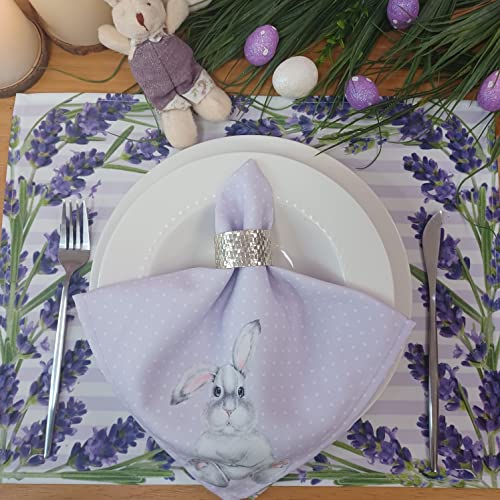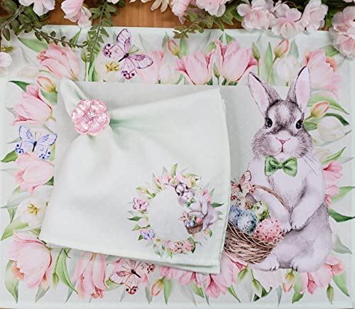 Charlo's Easter Synthetic Cloth Napkins Bunny and Birds Reusable Durable 16" x 16"