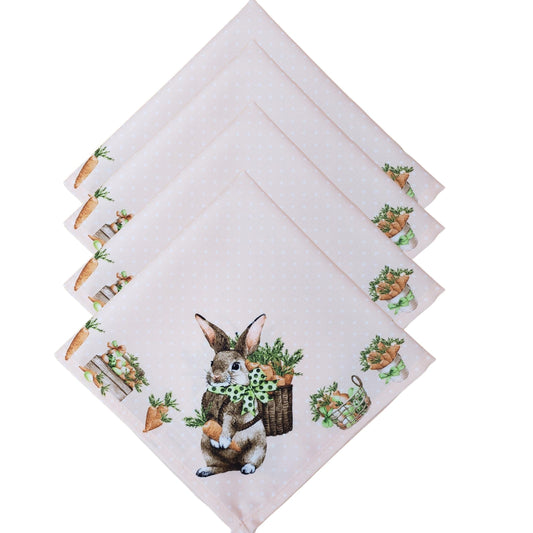 Charlo's Easter Synthetic Cloth Napkins Bunny Basket Reusable Durable 16" X 16"
