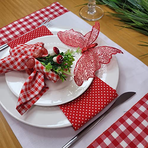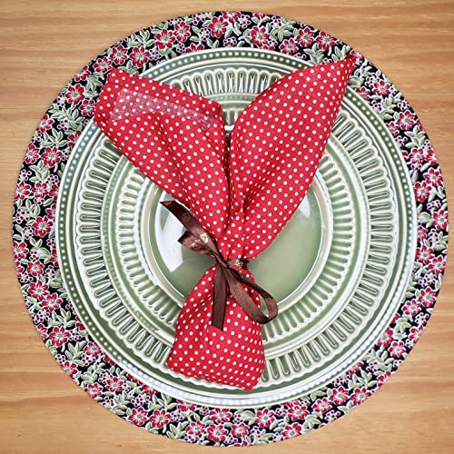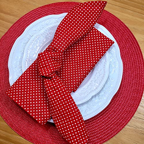 Charlo's Set of 4 Red Polka Dot 100% Cotton Cloth Napkins 15" by 15" Washable Reusable