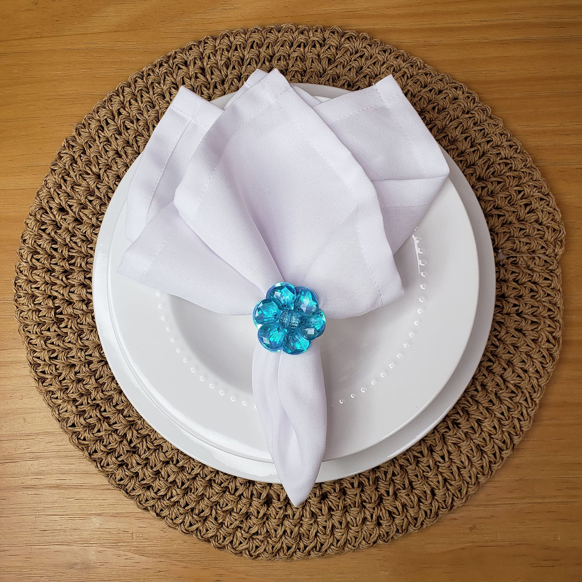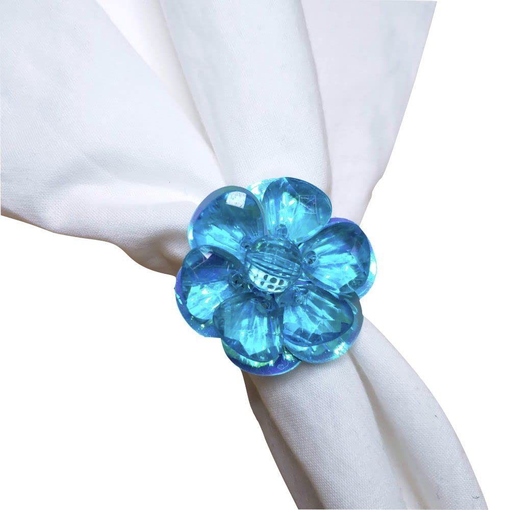 Charlo's Set of 4 Turquoise Delicate Flower Napkin Rings for Wedding, Thanksgiving, Christmas, Wedding, Banquet, Birthday