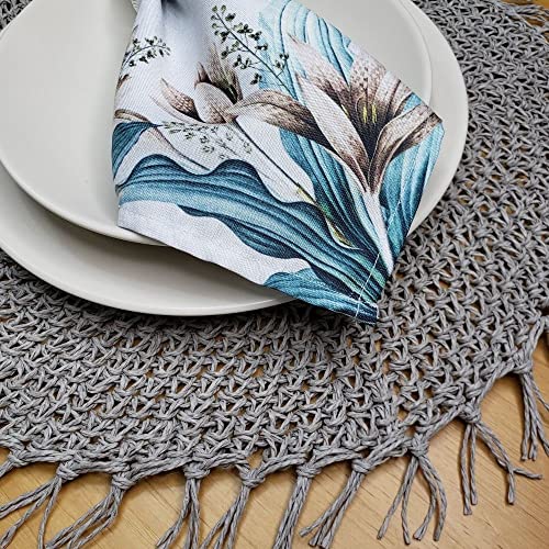Charlo's Set of 4 Grey Folk Sustainable Rustic Chic Round Placemats 16" x 16"