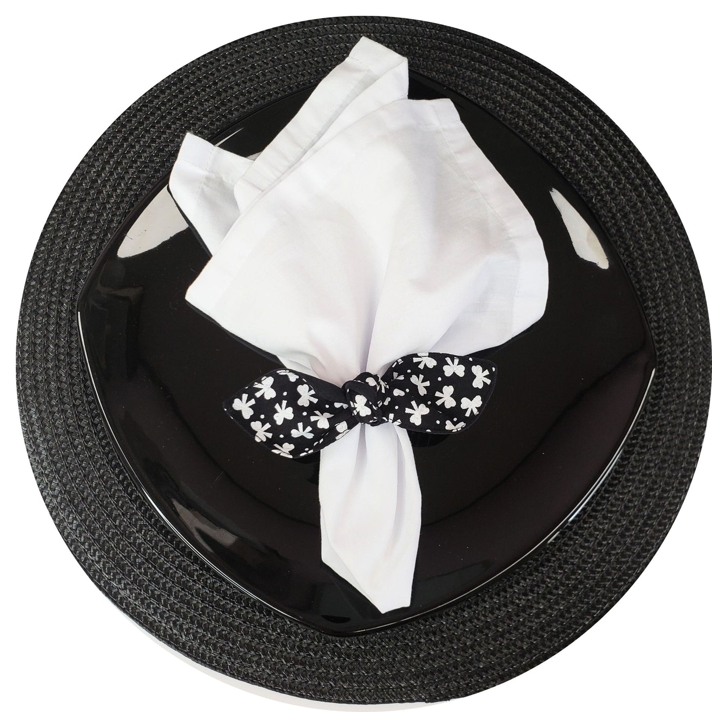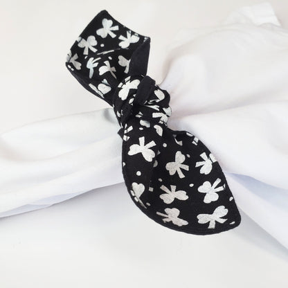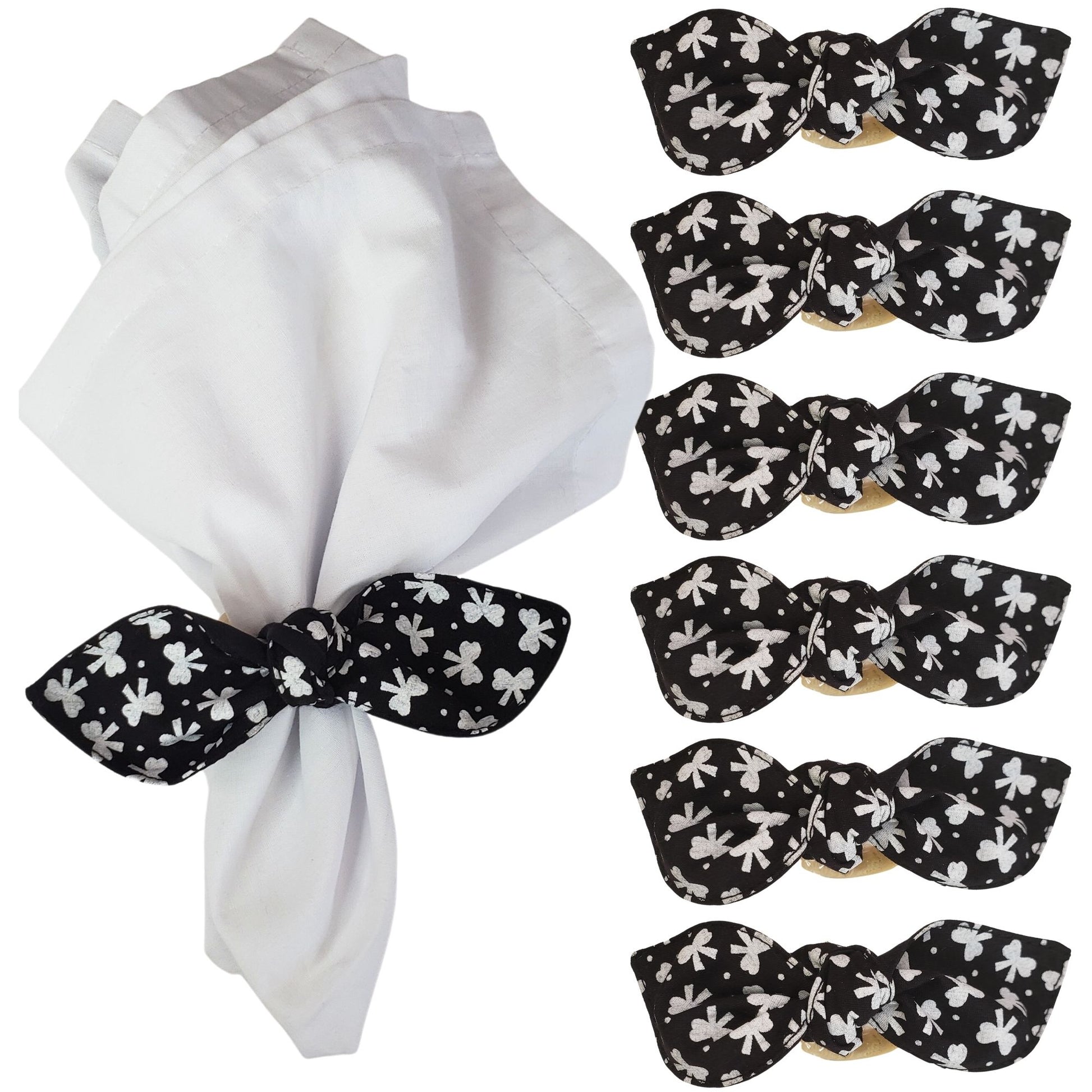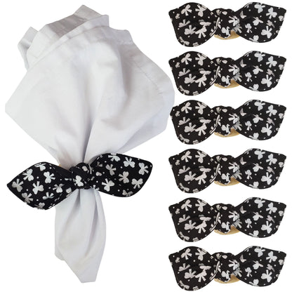 Maison Charlo |Set of 6 Ecofriendly Floral Black Cloth Little Ties Napkin Rings, Christmas, Easter, Valentine's, Mother's Day
